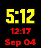This watchface displays the time of day most prominently in decimal time, with standard time and date below. Decimal time divides the day into 10 hours of 100 minutes.