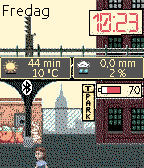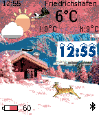 Sitting in boring meetings, a train or on a long trip with a bus you can watch the scenario of a snowy winter landscape. The "actors" change a little in particular during december. Due to this it remains interesting. ;) In addition the weather of your current location or a preconfigured fixed location is always shown to you in addition to the time, the date in nearly any language. Have fun!