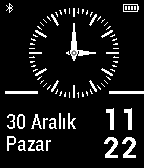 Dijital ve Analog saat, saatin üst kısmında batarya ve bağlantı durumunu gösteren iki ikon mevcut.