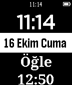 Türkçe sade dijital saat. Saatin üst kısmında pil ve bağlantı durumu ikonları mevcuttur.