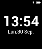 Watchface 100% Roboto, du Roboto bold pour l'heure, du Roboto condensed pour la date, avec affichage de la batterie et du statut bluetooth en haut à droite.