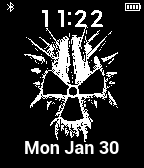 A very simple Watchface featuring the Black Flag band logo. Black Flag is a punk band that released their first EP, Nervous Breakdown, in 1978.