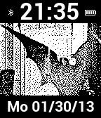 A simple watchface based on the album cover for "Bela Lugosi's Dead" released by Bauhaus in 1979.
