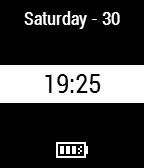 Time, date, and battery status at a glance with a contrasted banner for ease of viewing.