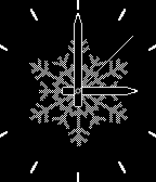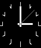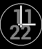 Two hands to tell you the time of day, inverted for those who prefer the black on white.
