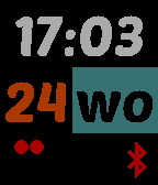 Follow-up of PVC's Essentials. Just like my Essentials, it is intended to for people that just need the essential information (time, day of the week, day of the month, battery status, bluetooth status) and prefer a bigger font. Differences with my Essentials are: the font size is now 50pt instead of 42pt, changed layout to fit with the bigger font, and 3 short vibrations when bluetooth connection is lost. Supported languages for the weekdays are: English, Dutch, French, German, Spanish and Italian.