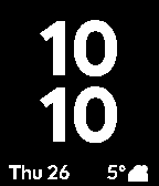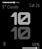 Watch face that shows information on 4 corners: Top left: Weather info with bar indicating the max/min temperature of the day and where we are in this range right now Top right: Date Bottom left: Phone connection state and phone battery Bottom right: Watch battery state