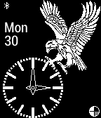 Ealgewings Head watchface with battery piece style indicator. This is one in Eaglewings set of watchfaces. Click "See All From Developer" to get more Eaglewings style watchfaces.