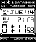 Color Watchface based on Casio Data Bank 31. All the watchface code (almost everything) is taken from 91 Dub watchface (maybe the best watchface on Pebble Store). So this is my little contribution. Now you can choose between Spanish, English, French, Italian, German, Portuguese and Dutch and change other features. Spanish Color Watchface based on Casio Data Bank 31. All the watchface code (almost everything) is taken from 91 Dub watchface (maybe the best watchface on Pebble Store). So this is my little contribution. Watchface en color basada en el Casio Data Bank 31. Todo el código del watchface (casi todo) está basado en la watchface 91 Dub, posiblemente la mejor watchface de la Pebble Store. Esta es mi pequeña contribución.