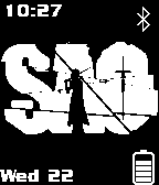 A simple digital & analog watch face based off of the popular anime "Sword Art Online" featuring Kirito in front of the letters "SAO."