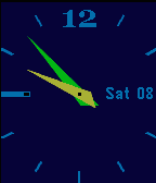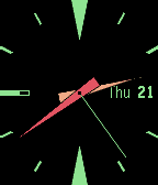 Analog watch face with several configuration options. Battery and BT connection indicator in the 9-marker. 9-marker turns red on lost BT connection with vibration. Night mode option for better readability in dark environments.