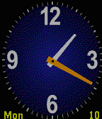Clear and crisp readable analog watchface with a blue sunburst dial. Options for BT connection warning, second hand, color and outline of hands. Freebie!