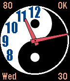 Simple Yin Yang watchface. BT Connection warning (configurable buzz on connection lost) and battery load display. Second hand can be turned on/off. Freebie!