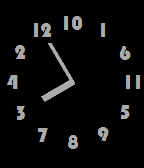 Analog face with hour numbers randomly assigned a font and position along the chapter ring. At 3:00, the hour hand will point to the 3 (wherever on the clock face that may be) and the minute hand will point to the 12 (wherever that may be). On a regular clock face, the hands would always form a right triangle at 3:00, but on the RandAlog Face, there's no telling what angle will form because the 3 and the 12 will be randomly positioned. The odds of this face ever appearing like a regular clock face is 1 in 47,9001,600; or about once every 911 years.