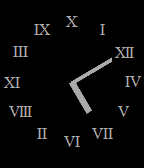 Analog face with Roman Numerals that are randomly assigned a position along the chapter ring. At 3:00, the hour hand will point to the 3 (wherever on the clock face that may be) and the minute hand will point to the 12 (wherever that may be). On a regular clock face, the hands would always form a right triangle at 3:00, but on the RandAlog Face, there's no telling what angle will form because the 3 and the 12 will be randomly positioned. The odds of this face ever appearing like a regular clock face is 1 in 47,9001,600; or about once every 911 years.