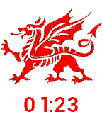 Welsh dragon watchface showing national flag of Wales. Vibrates when disconnected and inverts screen colour.