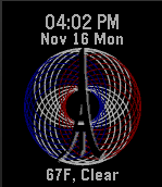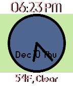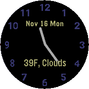 Digilog is a color changing digital and analog watchface that tells the time, current weather, day of the week, month, and day of the month.