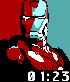 Vector image of Iron Man and a digital clock.