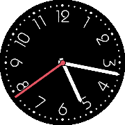 Tell the time like a Time Lord with this Doctor Who themed watch-face for all Pebbles. For the rest of us humans, here's how to tell the time: Four digits are displayed in fixed positions on the screen. Hours are on the top circle, minutes on the bottom. i.e. HHMM 0 (ZERO) - STRAIGHT LINE from the digit centre to the display edge. 1 (ONE) - STRAIGHT LINE from the digit centre to the opposite site. 2 (TWO) - ONE FULL CIRCLE. 3 (THREE) - TWO concentric CIRCLES. 4 (FOUR) - THREE concentric CIRCLES. 5 (FIVE) - ONE HALF CIRCLE INSIDE a BASE circle. 6 (SIX) - TWO HALF CIRCLES INSIDE a BASE circle. 7 (SEVEN) - THREE HALF CIRCLES INSIDE a BASE circle. 8 (EIGHT) - ONE HALF CIRCLE OUTSIDE a BASE circle. 9 (NINE) - 2 HALF CIRCLES OUTSIDE a BASE circle. Based from Streea's edit of "Gallifrey Time". Originally designed by SzathmaryDominik, code by Bobert Perry.