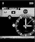 Simple and elegant analog watch face with logo. Connection and battery indicators.