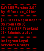 This is a preview for the program I made call Savage2v4.2.6. This client simplifys tasks and has features that allow it to be very effective with computers. Its also good for legal reporting of bad users for some websites. On the real bat file, this is Rapid Report Programming System (RRPS) which is a type of script that can take down social media accounts that break policy rules. ======================================= No copyright needed for the use of Savage Group ======================================= This content is owned by me and created by me with no other sources. There for their is no copyright infringing because of my consent to building this preview.