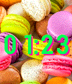 This is Macaroon digital watchface. This watchface consists of full color macaroons which are shown on a table. Macaroons are small rich cake cookies that come from France and differ in color.