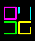 Summary: Neon tubes ftw. Readability: medium Examples: 04:36, 12:59, 18:25, 20:47 Neon IO uses an inside-out array for the four digits instead of a 2x2 one. So you have to read the small inner number first and the move outwards digit by digit. The most numbers are recognized intuitively - they look like the well known 7-segment digits without the center segment. For the 8 another encryption had to be found, to distinguish it from the 0. The = symbol it is. If it helps, it's like the 8 but just using the two voids (:) that have been stretched (=). The display of the Neon IO looks way more cryptic than the one from Neon. It takes a bit longer to understand it, but the dense mazy style looks cool. Design / Programming / Copyright © 2012, 2015 Sam Jerichow