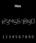 Summary: Neon tubes ftw. Readability: medium Examples: 04:36, 12:59, 18:25, 20:47 I always liked neon tube displays in sci-fi movies. Back then, when CGI wasn't used for every little thing, I liked the fact, soemone actually built alien symbols of neon tubes, that really work. I was sketching for minimalistic, square based numbers that make a cool neon tube display. The most numbers are recognized intuitively - they look like the well known 7-segment digits without the center segment. For the 8 another encryption had to be found, to distinguish it from the 0. The = symbol it is. If it helps, it's like the 8 but just using the two voids (:) that have been stretched (=). I like this symbol here, because it goes well with the alien touch of the display. Whenever the 8 appears, the whole display apperas to be even more cryptic, as it actually is. Design / Programming / Copyright © 2012, 2015 Sam Jerichow