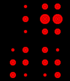 Summary: Time telling dots! Readability: medium Examples: 04:36, 12:59, 18:25, 20:47 I was sketching for a stylish way to transform the classic 7-segment numbers. One day I thought about how these numbers would look, if seen through a perforated metal plate. Its holes would have a different visual density depending on how much lines meet underneath. This is where the idea for Digital Density was born. The numbers are made of six dots at maximum. The dots are where the segments of the classic numbers have their ends. Sometimes three classic number segments meet in a spot, the visual density is high there. This situation has been transformed to a big dot for the new numbers. If two classic number segments would meet, the density is medium and so the resulting dot is medium. A single line results in a small dot. No line - no dot at all. So the new dot numbers have the same visual density as the classic numbers but have a more abstract appearance. They look weird at first, but they share a certain resemblance with their archetypes. There are four numbers aligned in a 2x2 array. The top ones tell the hours, the bottom ones tell the minutes. The Pebble Time fits nicely to these numbers with its round and simple case. The red watchface has been made especially for the red Pebble Time. Design : Sam Jerichow Programming : Sam Jerichow with kind support from Nev Rawlins Copyright © 2012, 2015 Sam Jerichow