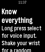 Encyclopedia always at hand. Long press select, speak a term and get the Wikipedia definition to your watch. Get random articles from Wikipedia with a flick of the wrist.