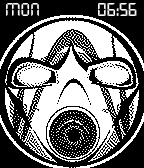 This watchface includes a Borderlands Psycho Mask/Logo, the day of the week, and the current time.