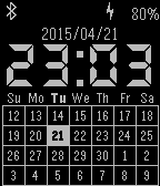 ・UpKey:PreviousMonth ・SelectKey:CurrentMonth ・DownKey:NextMonth ・SelectKeyLong:和暦、西暦変換 ・Date ・Time ・MonthlyCalendar ・Battery