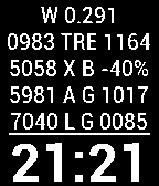 Displays: 1. Location (also infers BT connectivity) 2. Reverse tan and exp gradients both div 10 3. Current X (charge+)Battery 4. Arc tan 1 @ 45 degree = 1 and gradient div 10 5. Log10 and gradient div 100 6. Time There is also a Bluetooth disconnected vibration with a sensible 6 min time out to stop crazy vibes on edge of signal. The whole function space rotates every 6 mins.