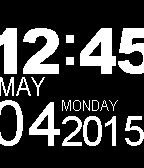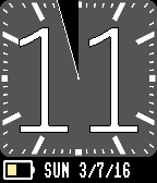 Basic clock face, shows the hour in numbers, but the minutes as a regular dial. Also shows the date (UK format) and the battery state. The hours respect your 12/24h setting.