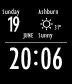 Simple face, showing time, date and weather (from Yahoo! service).
