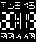 Shows the time in 7-segment retro style. Day (using the new pebble localized strings), date, battery level and bluetooth status in 14-segment text. Optionally invert the screen, remove the "shadows" of dark segments, stop the blinking of the dots and charge pecent when charging and vibrate on bluetooth events.
