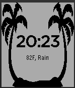 Watchface features 2 palm trees with the current time and temperature based on location.