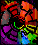 Time and date wrapped around a circular battery meter, then colorfully glitched out.