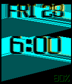 Inspired by a cool analog-style VFD (vacuum fluorescent display) clock. Unlike the real thing, number labels change from relatively dim minutes to brightly glowing hours (or as close an approximation as one can get on the Pebble display). Battery meter at bottom.