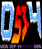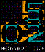 A big digital watchface where each digit is constructed from a 3x3 block grid. Most numbers are immediately easy to read and the rest are easy to decipher -- in this screenshot the time is 08:35 on Saturday the 15th.