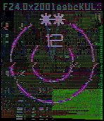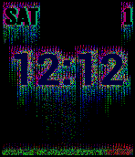 A hybrid (analog+digital) watchface with a glitch art/cyberpunk aesthetic. Only updates once per minute to conserve battery life, though constant animation might be awesome... The central ring is the hour, outer ring is minutes. A narrow stripe on the right edge serves as a color-coded battery meter. The current date is encoded in the text along the top: a single letter for the day of week (suNday, Monday, tUesday, Wednesday, tHursday, Friday, sAturday), the day of the month, the pointer address of the GContext in lowercase, and the month in upper case with the first character shifted. In these screenshots it's Friday, July 24.