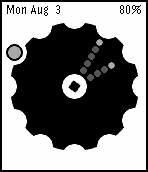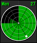 Analog watch that shows time in the style of a radar screen. The circle is divided into 12 segments, representing hours. The current minutes can be read by the position of the radar blip near the outer edge, and also in the amount of the next segment that is filled in. In the screenshot below the time is 9:25.
