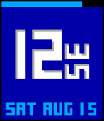 Easily readable digital watch, with the minutes rotated 90 degrees. Battery meter at top, date at bottom.