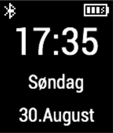 Battery Bluetooth connection Bluetooth vibration on disconnect Watch Date Weekday Month Language: Danish