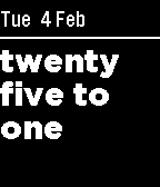 A combination of Fuzzy Time and Simplicity, using UK time descriptions (such as "past" rather than "after"). Based on the "jps British" watchface, converted to SDK 2.0