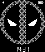 Deadpool Watchface. First one on the Pebble Appstore (on Android at least.) No copyright infringement intended. Made with watchface-generator.de