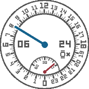 A 24-hour analog-styled watch face with minutes sub-dial with digital months and date. It also can notify you when your Pebble is disconnected from your mobile phone by vibrating and displaying a disconnected icon on the watch.