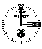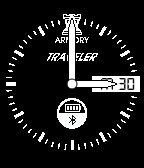 Let's face it--we can get too busy running around all day to remember to charge our Pebbles. The Armory Traveler is an analogue Watchface that gives you exactly what you need at a glance without draining your battery. It is simple, clean, and stylish, and perfect for looking slick on the go. Shows time, date, battery, and Bluetooth connection. For black-on-white, please download Traveler.