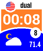 This watchface is for Pebblers in the USA and Canada only. (Pebblers in Europe, please check out EU DualTime). Besides the local time, date and weather (temperature in Fahrenheit or Celsius), this watchface also shows your home time as a dual time when you travel to a different timezone. And no hassle, this watchface auto adjusts to summer and wintertime. Never call home at an awkward moment again! Shake your wrist to show seconds in stead of the date (see settings). Futhermore an attention signal and icon, when bluetooth connection with your phone is lost. The background colour of the local time indicates the battery level. Up to and above 30% green, up to 20% orange and less than 20% red. After downloading this watchface, go to settings (in the Pebble app on your phone) to set your home timezone and your temperature preference. If you like it, heart it ;-)