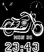 Motorcycle theme with time, date, pebble battery life and bluetooth connectivity indicator